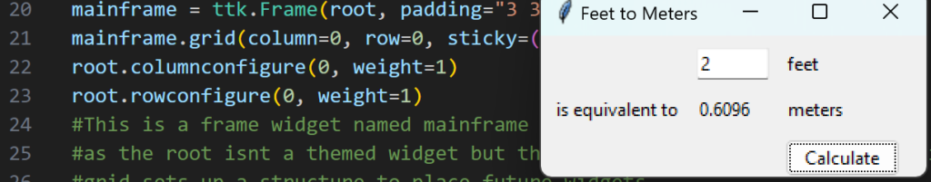 I found an interesting application on TkDocs that acts as a simple feet to meters converter and poked around at it.